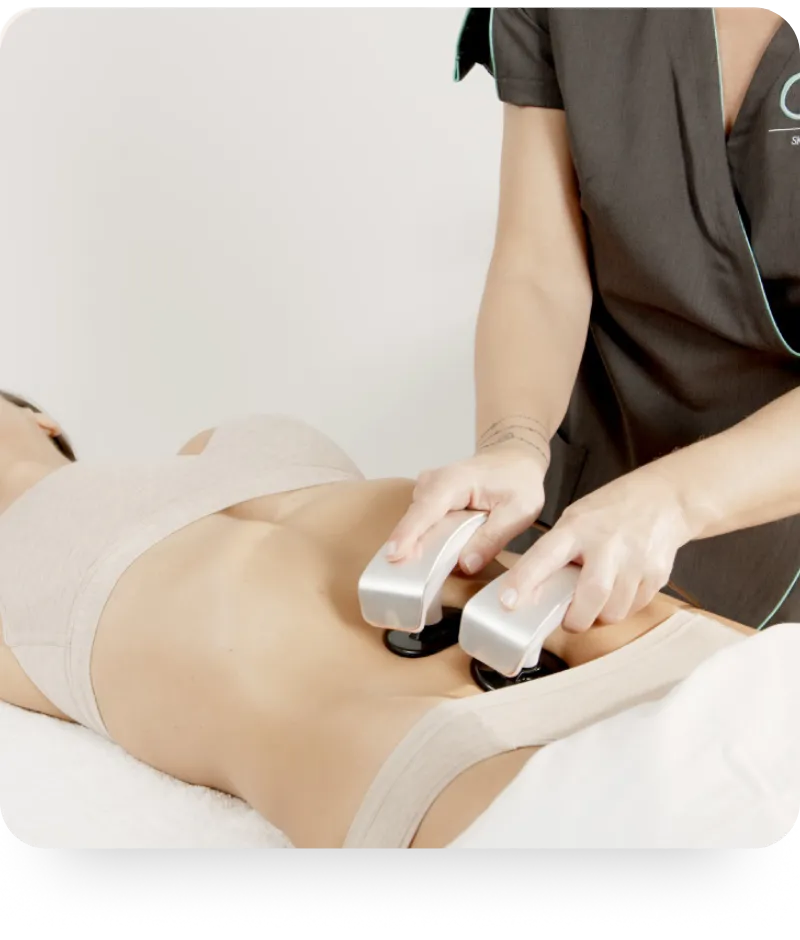 EMS oftewel elektrostimulatie herstelt de spiertonus, de spieren worden hierdoor sterker en korter. Hierdoor zal de huid strakker en gevormd worden.